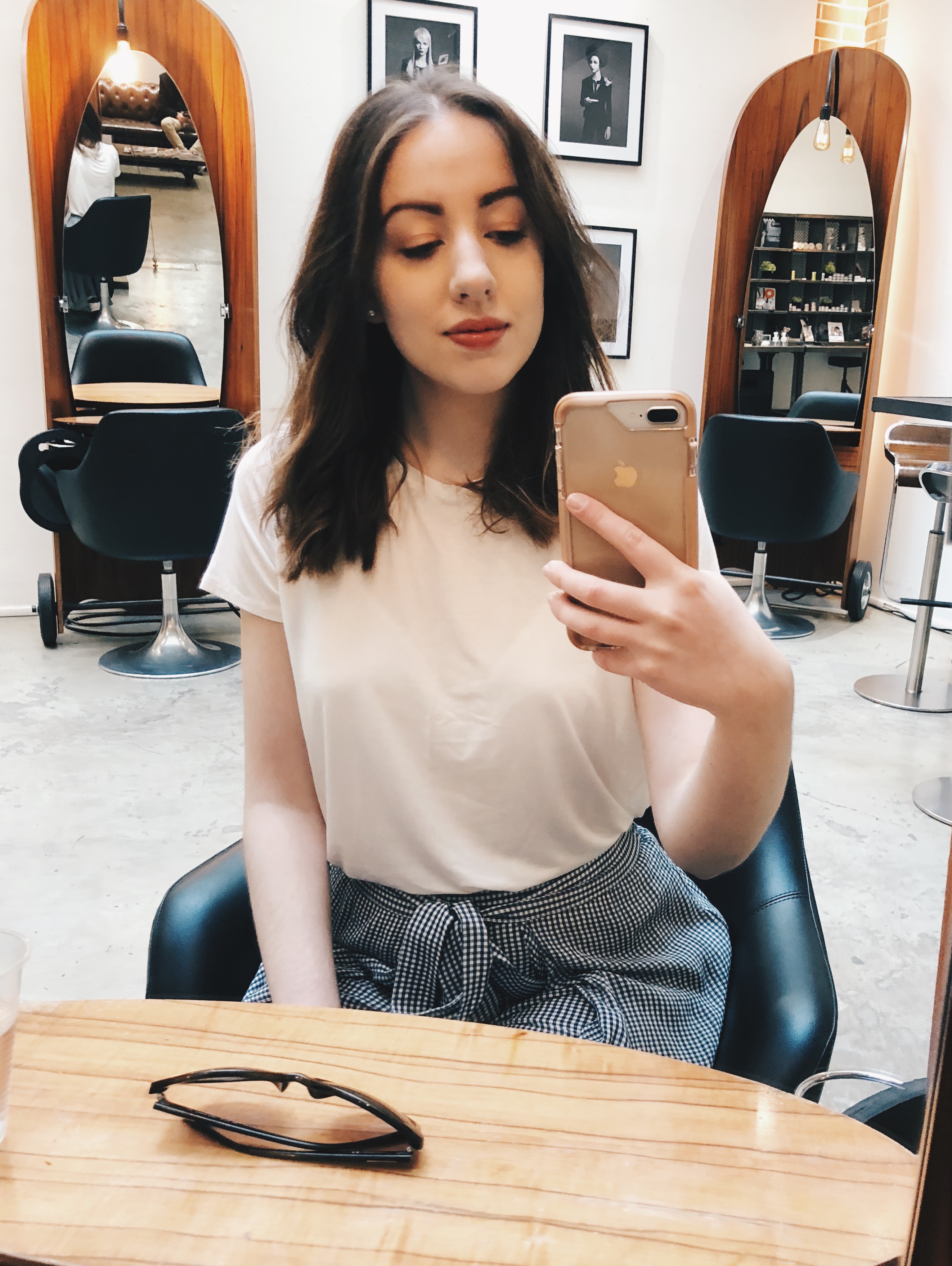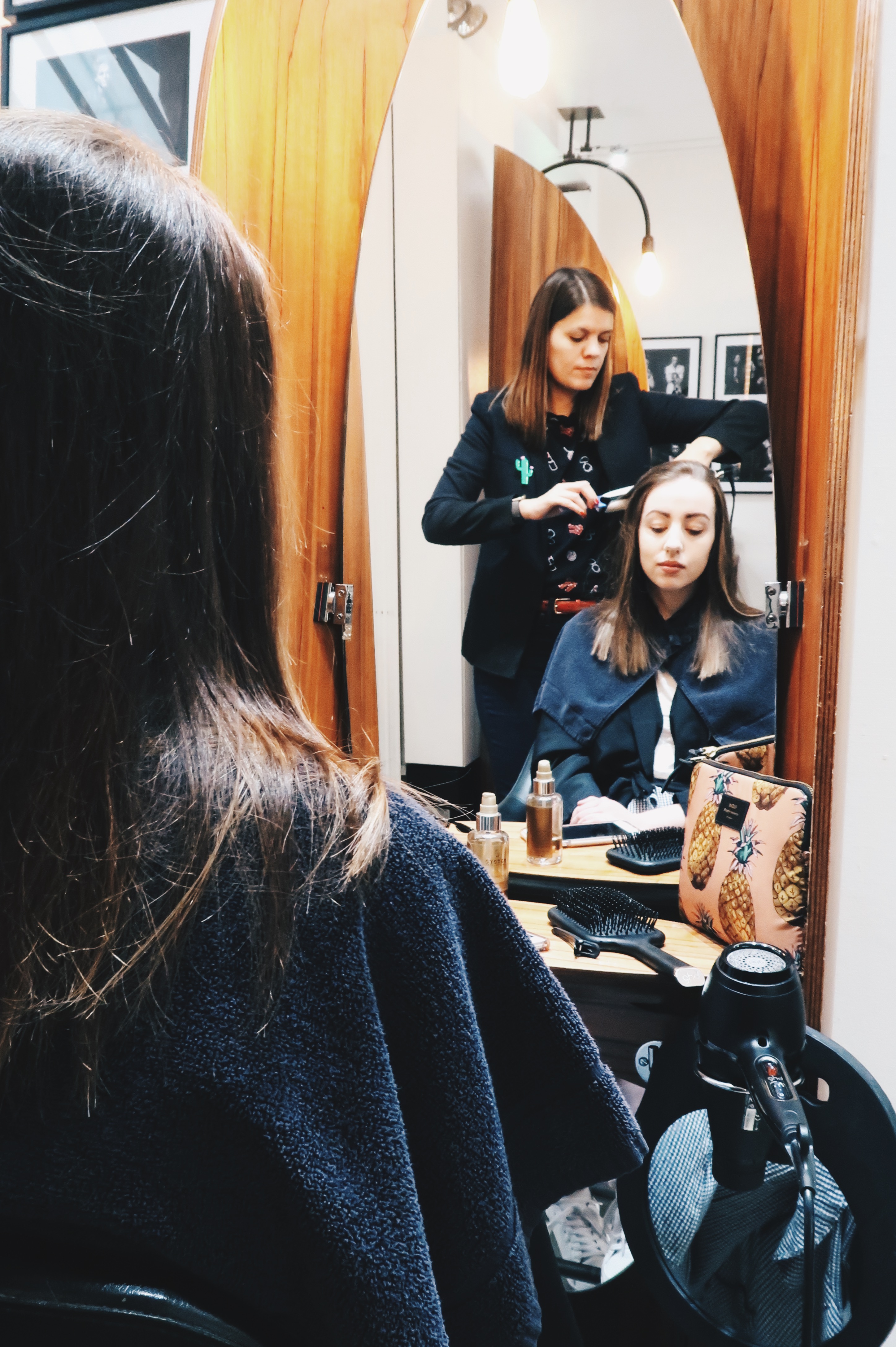 I have read many great things online about a French brushing (otherwise known as a blow-dry or blowout in English.) I was really excited to see what it was all about! Elodie carefully studied my hair and told me her styling ideas. I could tell immediately that she is so knowledgeable when it comes to styling and haircare! We decided to go for a straight and sleek look. She then lead me downstairs to the wash station and began shampooing my hair. The salon takes pride in using high-end products that are good for your hair.